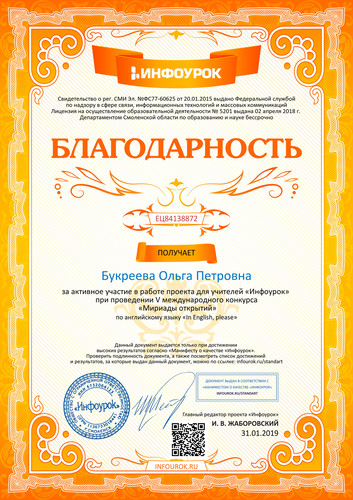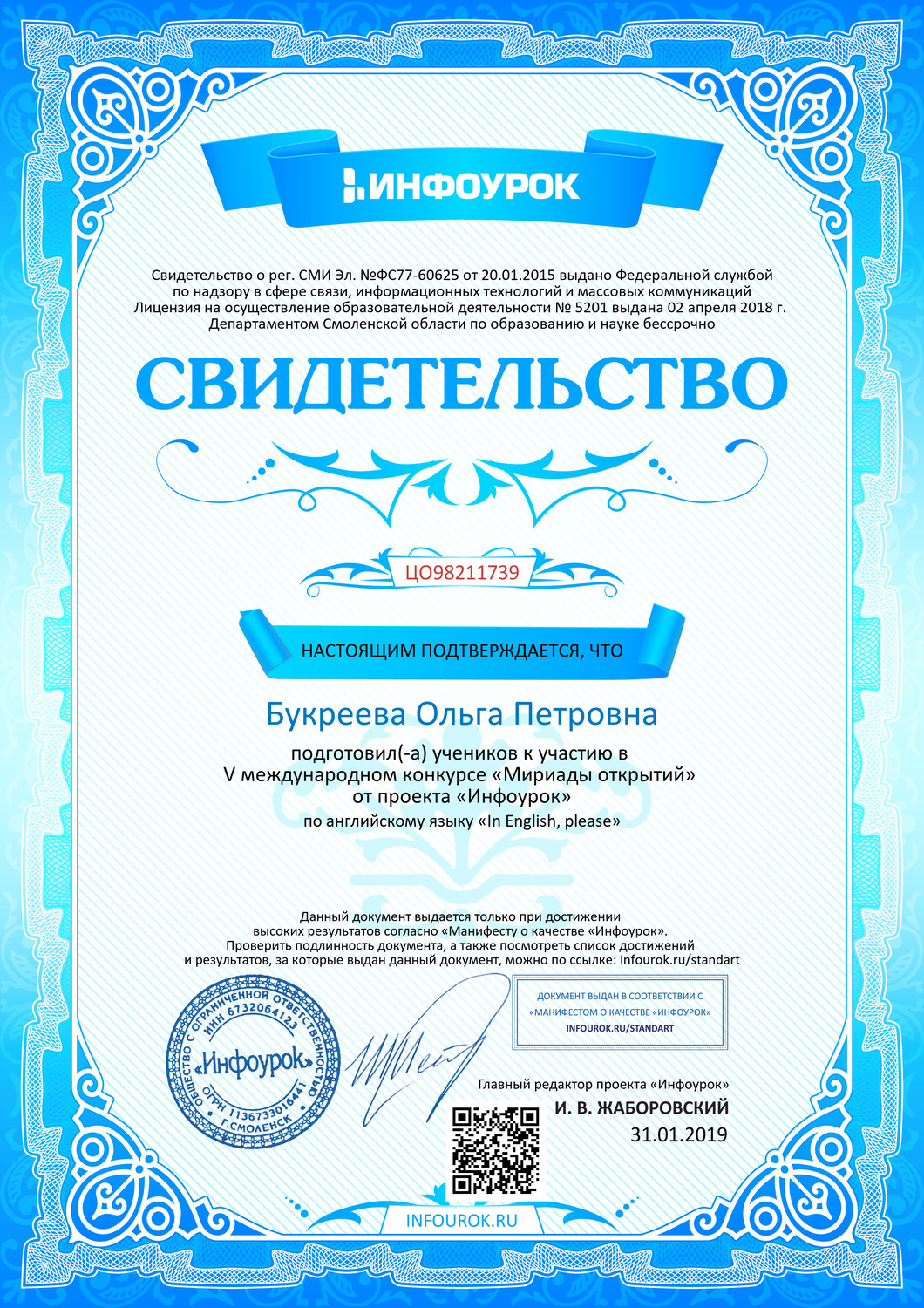 Подведены итоги участия в международной олимпиаде по английскому языку проекта «Инфоурок» зимний сезон 2019.