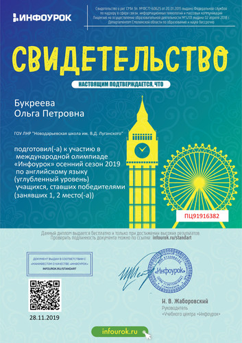 Подведены итоги участия в международной олимпиаде по английскому языку проекта «Инфоурок» осенний сезон 2019.