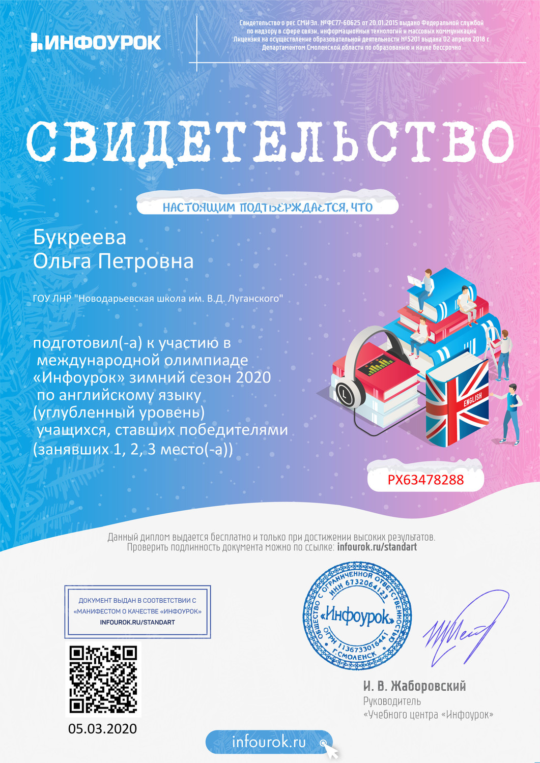 Подведены итоги участия в международной олимпиаде по английскому языку проекта «Инфоурок» зимний сезон 2020.