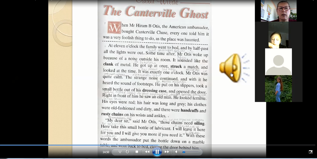 6 октября в 7-Б классе состоялся открытый онлайн урок по теме "The Canterville Ghost" Extensive Reading 2.